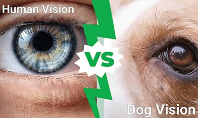 ▲ 강아지의 시력과 인간의 시력비교, 흑백시선이 강아지다