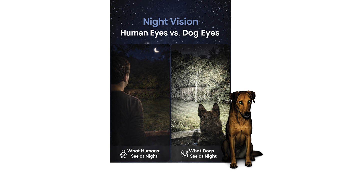 ▲강아지의 야간시력은 인간보다 훨신더 밝다