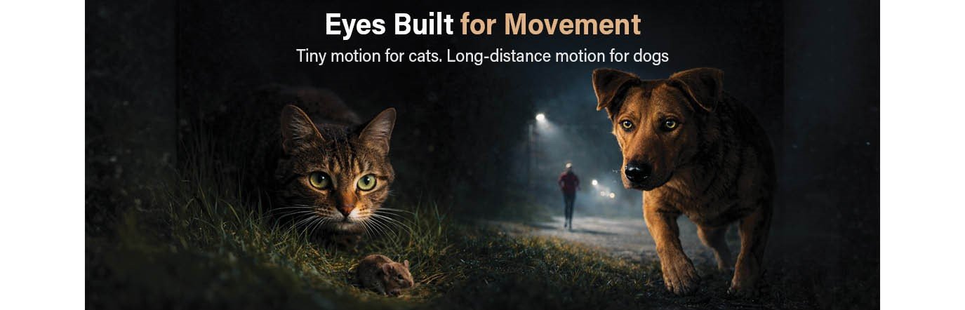 반려동물의 진짜 강점은 ‘움직임’을 포착하는 데 있다. 고양이의 동체시력은 사람보다 4배 이상 뛰어나 1초에 4㎜의 미세한 움직임도 감지한다. 개는 정지한 물체는 585m 이내에서만 식별하지만, 움직이는 물체는 810~900m 밖에서도 알아챈다는 연구 결과도 있다.