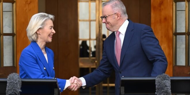 앤서니 앨버니지 호주 총리도 “이번 협정은 EU와 호주가 자유롭고 공정한 무역을 지지하고, 무역이 양측의 번영을 증진하며, 이를 실현하는 것이 우리 모두의 이익에 부합한다는 것을 분명히 보여주는 것”이라고 말했다.