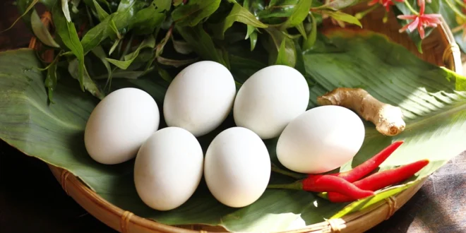 미국 농무부(USDA) 데이터에 따르면 삶은 알 100g당 영양가 분석 결과 오리알의 열량은 223kcal로 계란(149kcal)보다 높다. 단백질 함량은 오리알이 12g, 계란이 10g으로 큰 차이가 없으나 지방은 오리알이 18.5g으로 계란(11g)보다 많다. 특히 비타민 B12와 철분 수치에서 오리알은 각각 일일 권장량(DV)의 168%와 20%를 기록하며 계란(32%, 7%)을 압도한다. 셀레늄 수치 또한 오리알이 62%로 계란(43%)보다 높게 나타났다.