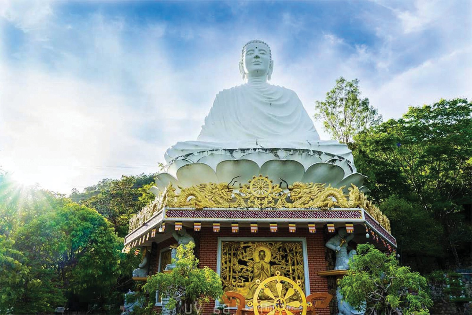 빈끼엔 (Binh Kien) 읍에 자리한 바오 람 사원 (Bao Lam Pagoda)은 민망 (Minh Mang) 왕 재위 시절 창건된 유서 깊은 사찰이다. 높이 18미터의 불상, 12미터짜리 종각, 무게 1.5톤의 대형 범종, 15미터 높이의 석가모니 좌불상 등이 경내에 들어서 있어 규모만으로도 압도적이다. 꽃밭과 돌계단으로 이어지는 진입로를 걷는 것 자체가 여행의 일부다.