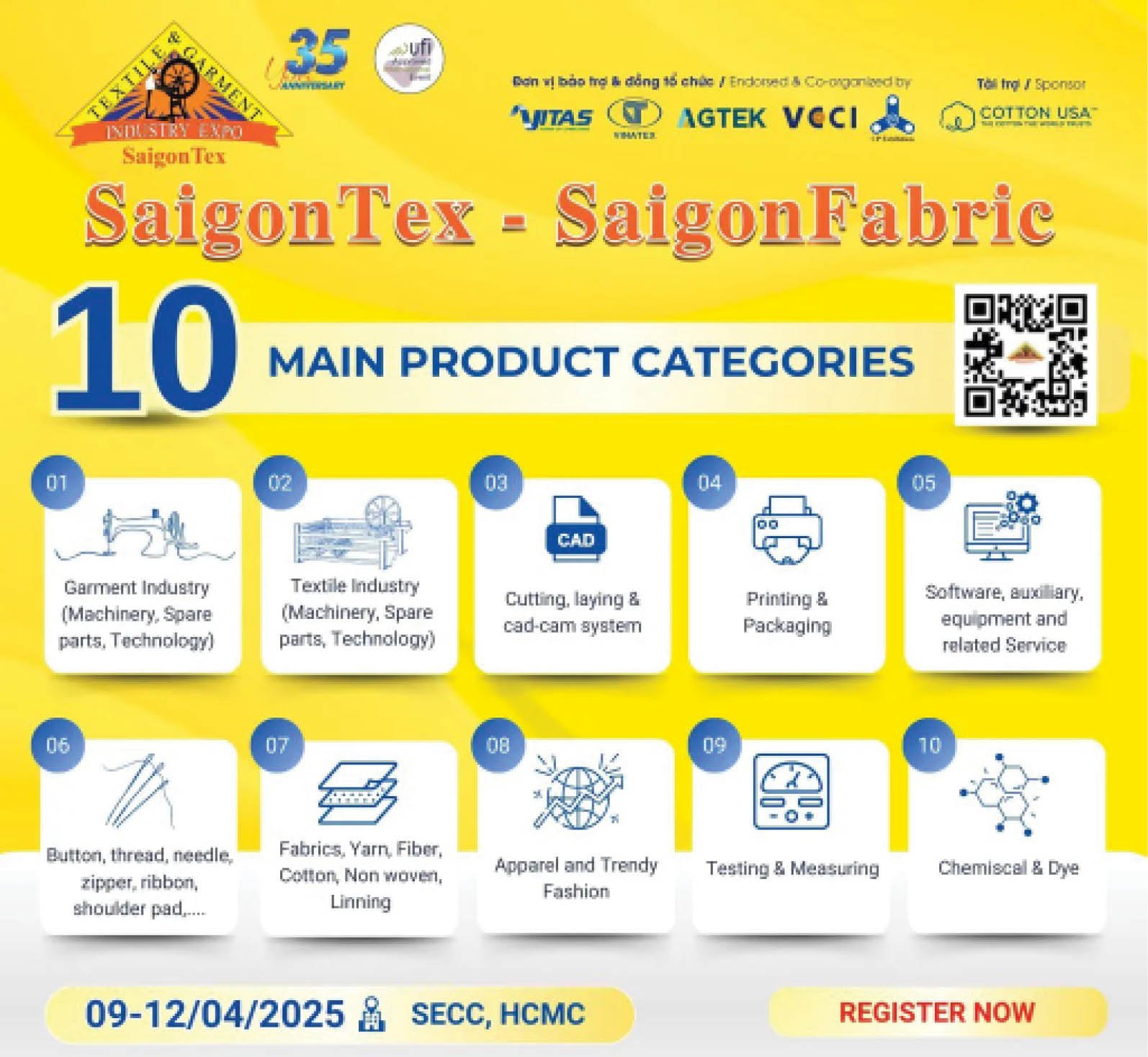베트남 섬유·의류 산업을 대표하는 국제 전시회로, 섬유 기계·부품, 원단, 염료·화학약품, 봉제 부자재 등이 망라된다. 베트남은 세계 3위권 의류 수출국으로, 이 전시회는 글로벌 패션 브랜드의 소싱 담당자와 베트남 현지 생산업체를 잇는 핵심 연결 고리 역할을 한다. 4일간의 일정으로 가장 긴 행사이기도 하다.