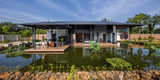 동나이(Dong Nai)성의 넓은 과수원 한복판에 농업용 저수지를 주거 공간의 중심 경관으로 활용한 116제곱미터(m²) 규모의 독특한 농가 주택이 건립되어 주목받고 있다. 3일(현지시간) 건축 설계팀에 따르면, 이 주택은 단순한 주거 시설을 넘어 농업 용수 저장, 수경 재배, 가축 사육이 하나의 생태계로 연결되는 순환형 구조를 갖췄다.