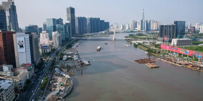 호찌민(Ho Chi Minh)시의 새로운 랜드마크가 될 사이공강 보도교가 착공 1년 만에 주요 구간의 형태를 드러내며 건설에 속도를 내고 있다. 4일(현지시간) 호찌민시 건설 현장과 현지 매체 보도에 따르면, 1군 박당(Bach Dang) 공원과 투티êm(Thu Thiem) 신도시를 잇는 이 교량은 현재 하부 구조물 설치를 마치고 상부 공정에 진입했다.