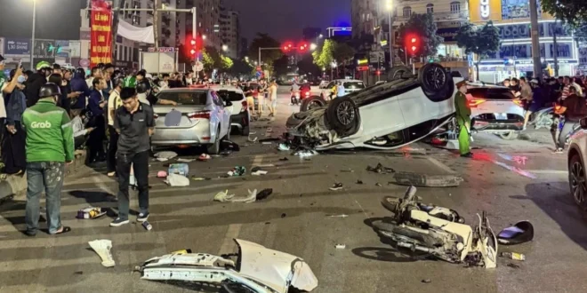 하노이(Hanoi) 시내에서 렉서스 승용차를 몰다 차량 5대와 오토바이 1대를 잇달아 들이받는 대형 연쇄 추돌 사고를 낸 운전자가 공안에 기소됐다. 7일(현지시간) 하노이 옌호아(Yen Hoa) 공안과 현지 매체 보도에 따르면, 공안 당국은 도로 교통 참여 규정 위반 혐의로 부 광 찌엔(Vu Quang Chien, 39)을 입건하고 본격적인 수사에 착수했다.