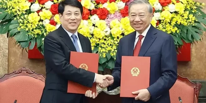 또 람(To Lam) 베트남 공산당 총비서가 국가주석직 업무를 공식 인수하며 명실상부한 베트남 최고 지도자로서의 행보를 본격화했다. 10일 베트남 주석궁과 현지 매체 등에 따르면, 또 람 총비서 겸 국가주석은 전날 오후 주석궁에서 렁 끄엉(Luong Cuong) 전 국가주석과 주석직 업무 인수인계서에 서명했다.