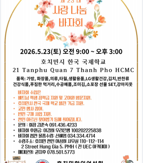 호찌민한인여성회(Korean Woman’s Association in HCMC)가 오는 5월 23일(토) 오전 9시부터 오후 3시까지 ‘제23대 사랑 나눔 바자회’를 개최한다.