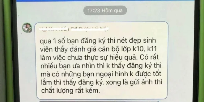 하노이 약학전문대학(Cao đẳng Dược Hà Nội)의 한 강사가 학생들의 외모를 비하하는 듯한 메시지를 보낸 사실이 알려지며 온라인상에서 거센 비난이 일고 있다. 16일 SNS를 통해 확산된 해당 메시지에는 교내 미인대회인 ‘학생 미소 콘테스트’를 앞두고 학생들의 외모와 사진 품질을 지적하는 내용이 담겨 논란이 됐다.