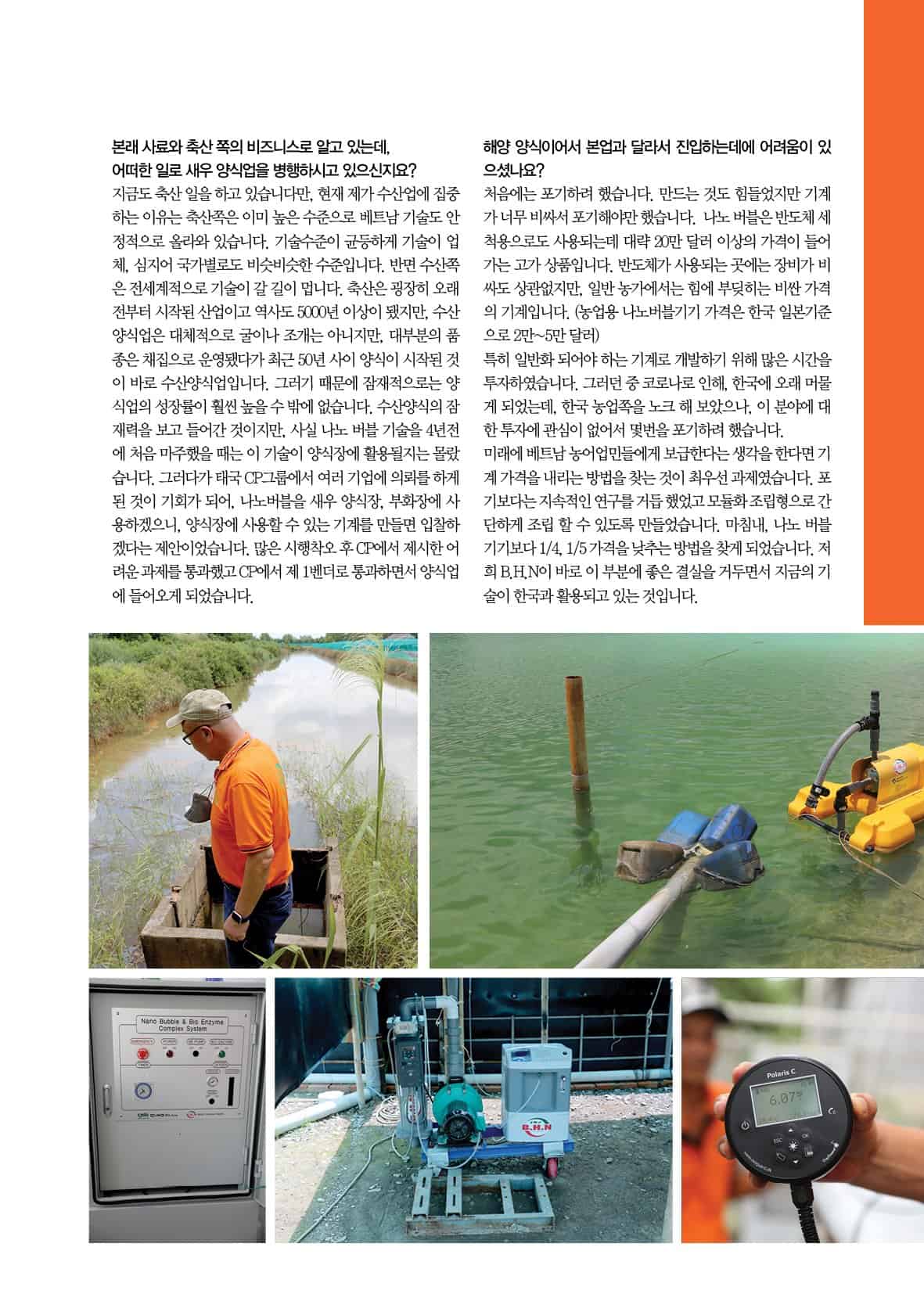 그의 땀과 노력이 배어있는 껀터지역의 B.N.H양식장을 찾아, 눈코 뜰새 없이 바쁜 하루를 살고 있는 선재승  대표와의 인터뷰를 담았다.