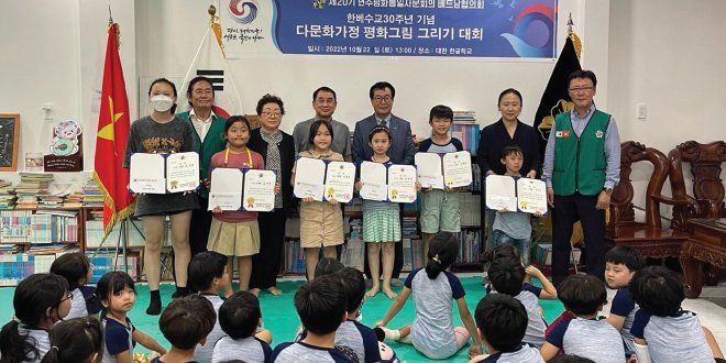 베트남협의회 체육.문화분과(위원장 박기순)가 주관하는 다문화가정 꿈나무를 위한 잔치, 평화 그림그리기 대회는 ‘평화-통일’이라는 주제를 기반으로, 50여명이 넘는 초등학생들이 각자의 생각을 하얀 도화지 위에 나타내는 대회로 기존에는 평화공원에서 실시 예정이었으나, 부득이한 장소 변경으로 인하여 베트남대한 한글학교에서 개최되었다.