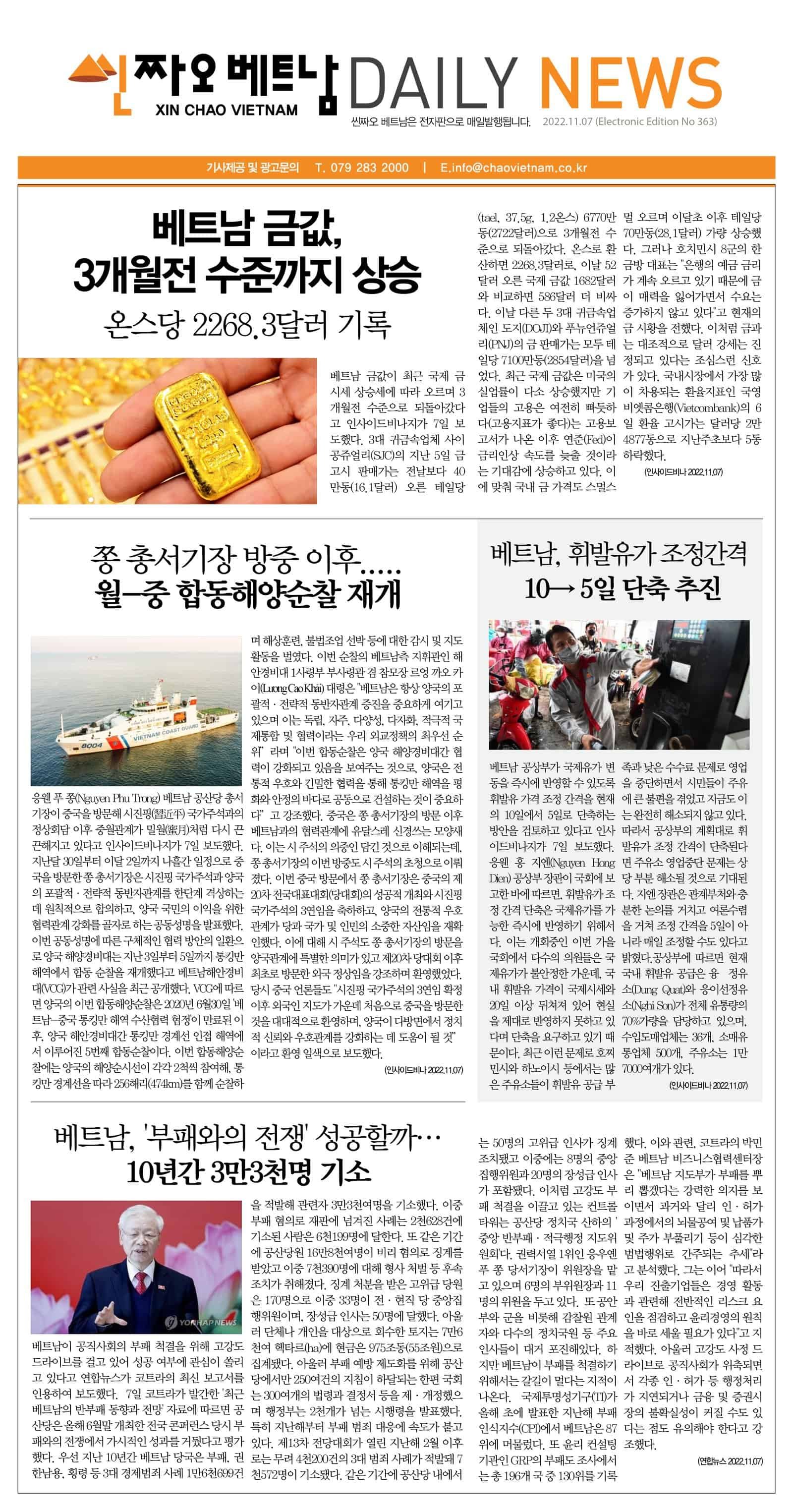 11월 07일 씬짜오베트남 데일리뉴스