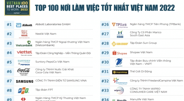 올해 1위는 애보트베트남(Abbott Vietnam)으로 작년보다 3계단 상승했다. 이어 네슬레베트남(Nestle Vietnam), 국영 비엣콤은행(Vietcombank), 국영통신사 비엣텔(Viettel), 산토리펩시코(Suntory Pepsico), 코카콜라베트남, 삼성비나전자, FPT, 테크콤은행(Techcombank), 빈그룹(Vingroup) 등의 순으로 10위권에 들었다.