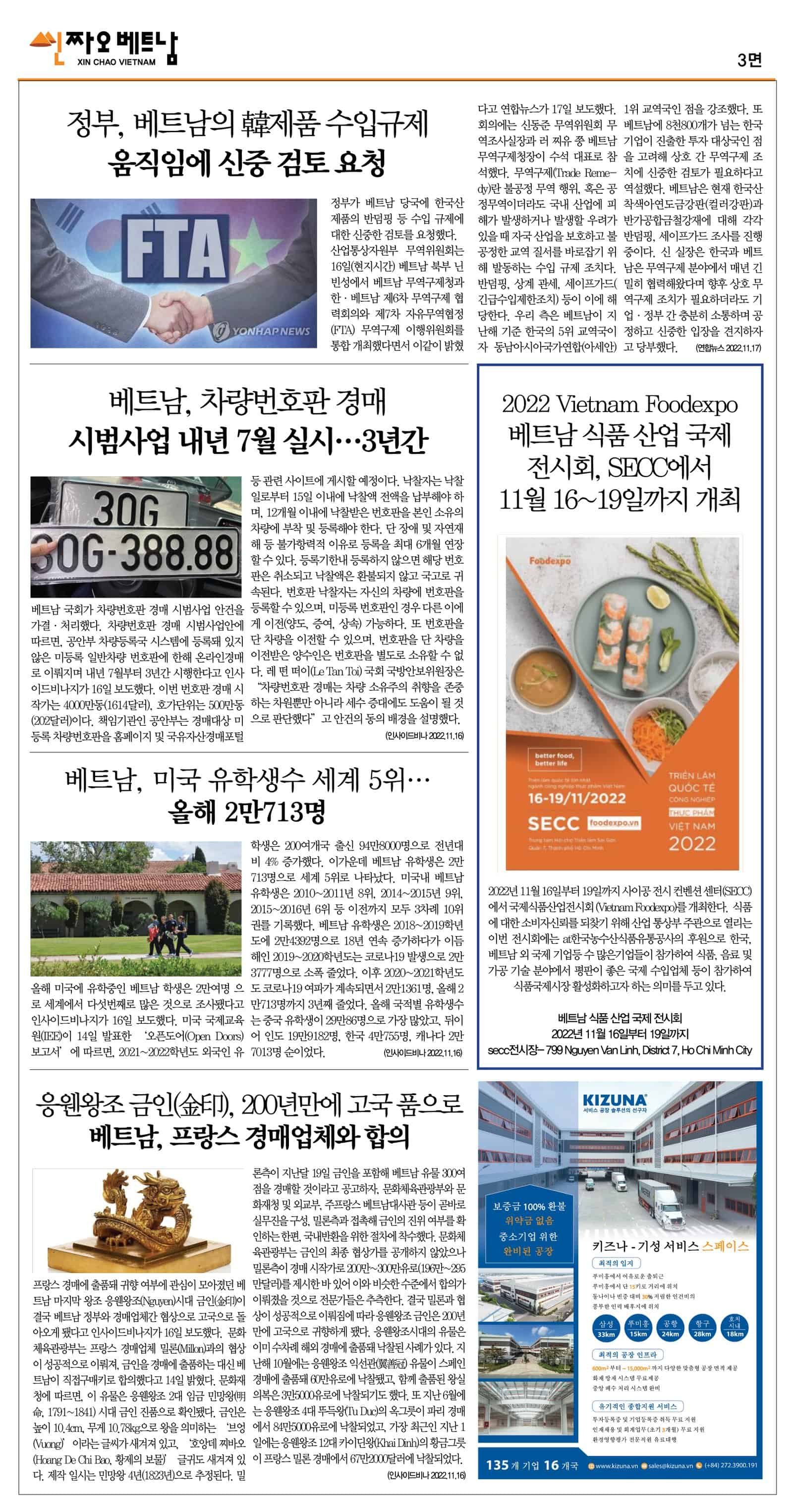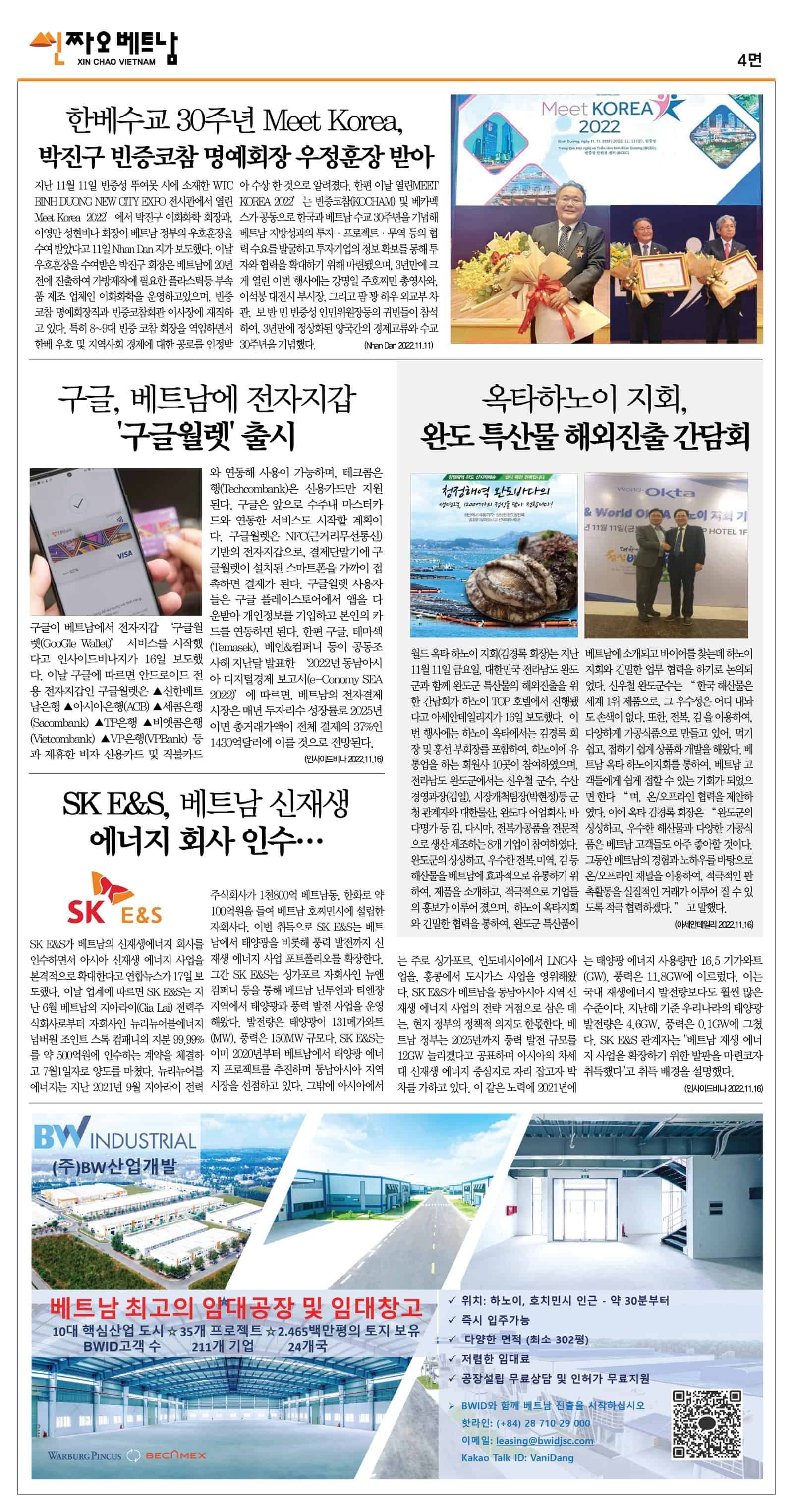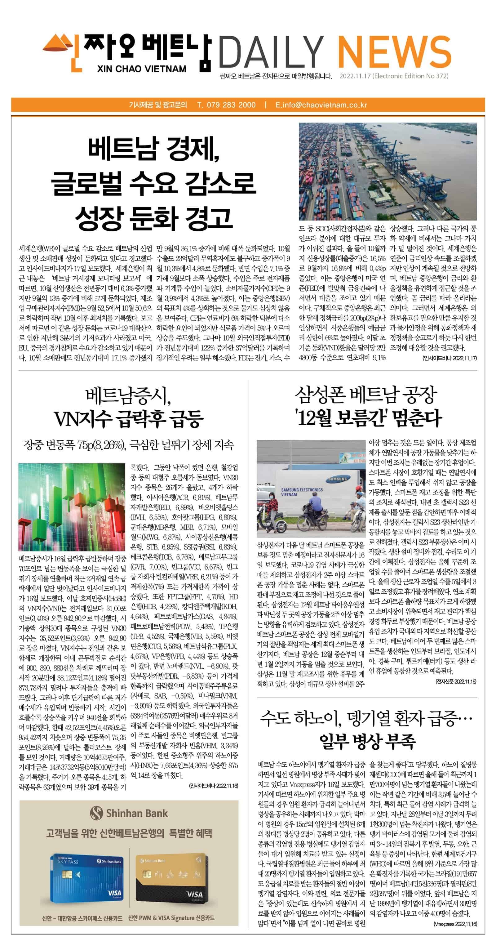 11월 17일 씬짜오베트남 데일리뉴스