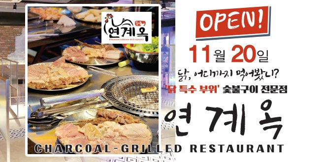 지난 11월 20일에 오픈 한 연계옥은 더 스타호텔 1층에서 함께 운영하고 있다. 꾸준한 고객들의 사랑을 받고 있는 더 스타호텔의 조식뷔페를 아침 6시부터 10시까지 연계옥에서 제공하고 오후 5시부터 10시까지는 ‘닭 특수 부위’별 숯불구이로 손님들을 맞이 하고 있다.