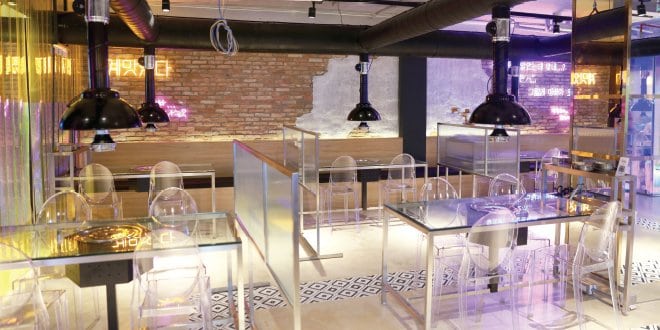다른 숯에 비해 수분이 적어 최대 7,500kcal의 발열량을 자랑하는 맹그로브 숯을 사용하여 단시간 내에 빠르게 익혀 내는 것이 이 집만의 비법이다. 또한 착화시에 숯이 튀지 않아 식사를 하는 동안에도 편리하게 사용할 수 있다는 장점이 있다.