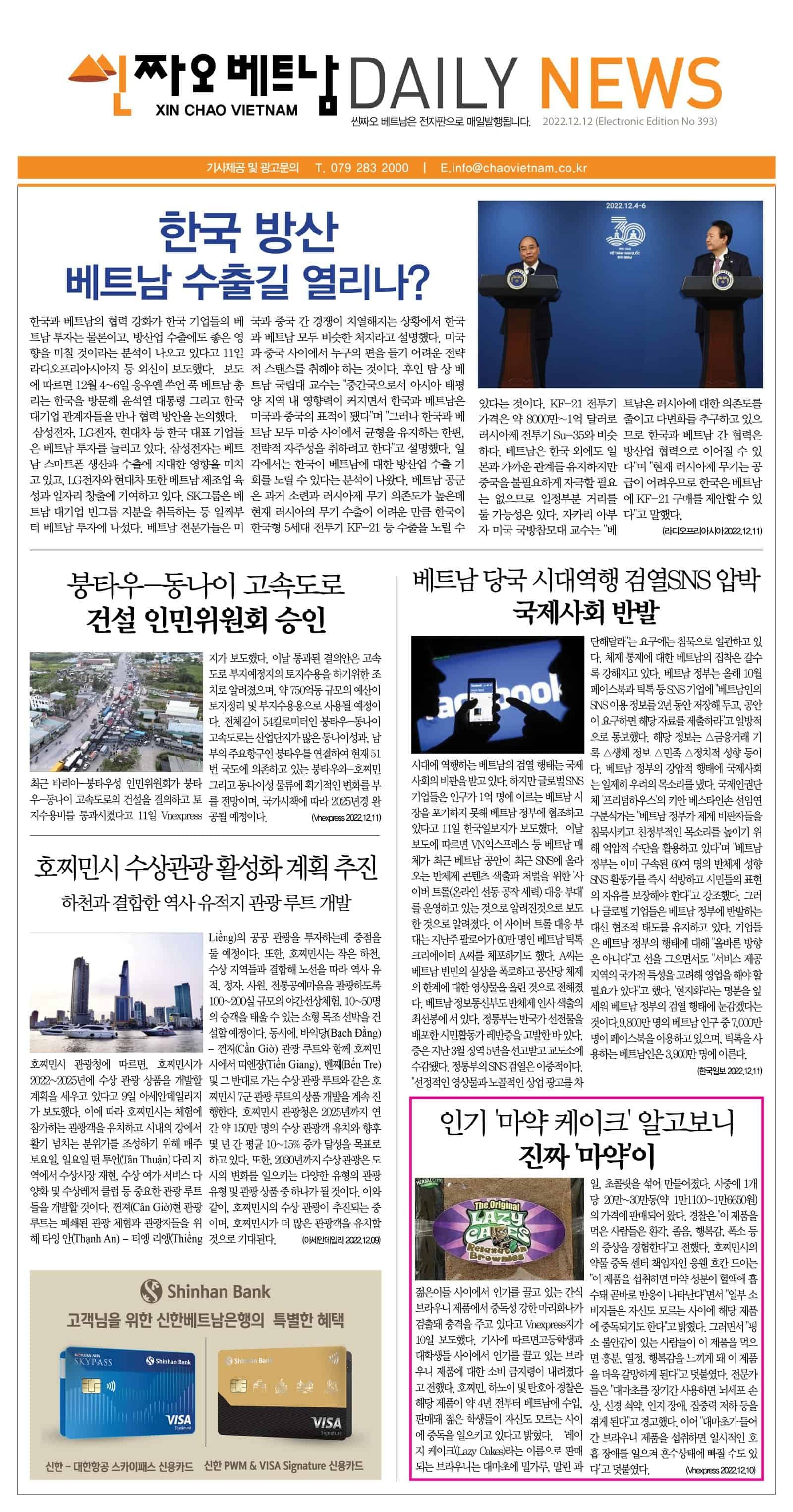 12월 12일 씬짜오베트남 데일리뉴스 chaovietnam 2022년 12월 12일 Daily News PDF, 뉴스 Leave a comment 31 Views Share Facebook Twitter Stumbleupon LinkedIn Pinterest