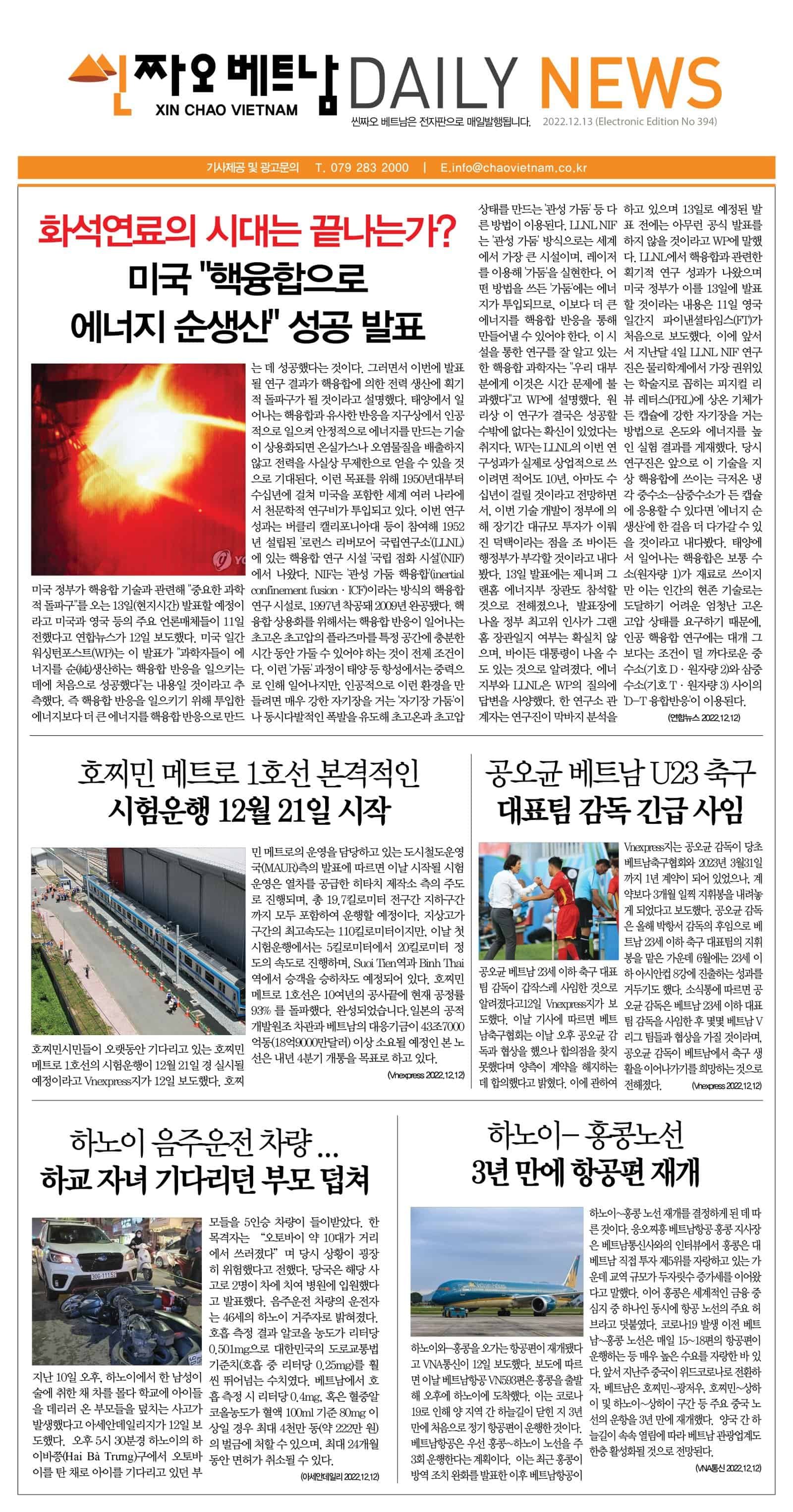 12월 13일 씬짜오베트남 데일리뉴스 chaovietnam 2022년 12월 13일 Daily News PDF, 뉴스 Leave a comment 30 Views Share Facebook Twitter Stumbleupon LinkedIn Pinterest