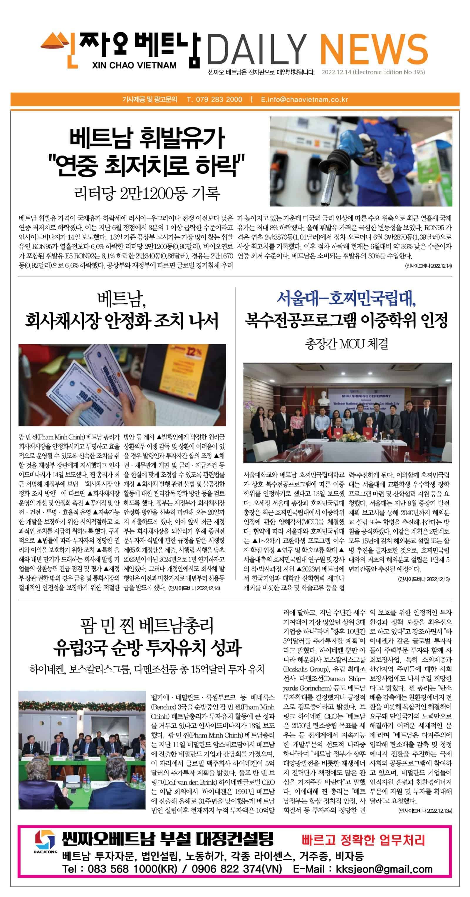 12월 14일 씬짜오베트남 데일리뉴스 chaovietnam 2022년 12월 14일 Daily News PDF, 뉴스 Leave a comment 23 Views Share Facebook Twitter Stumbleupon LinkedIn Pinterest