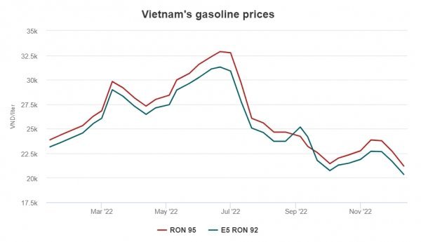 베트남 휘발유 가격이 국제유가 하락세에 러시아-우크라이나 전쟁 이전보다 낮은 연중 최저치로 하락했다. 이는 지난 6월 정점에서 3분의 1 이상 급락한 수준이라고 인사이드비나지가 14일 보도했다.