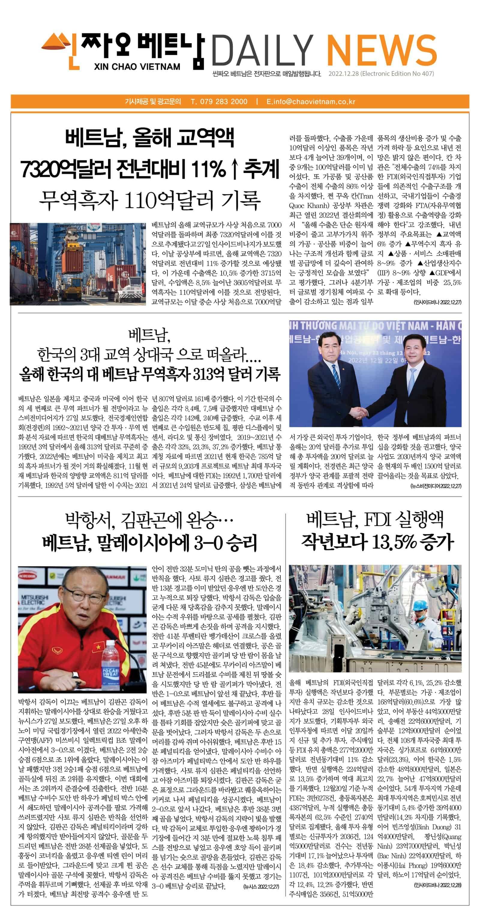 12월 28일 씬짜오베트남 데일리뉴스 chaovietnam 2022년 12월 28일 Daily News PDF, 뉴스 Leave a comment 50 Views Share Facebook Twitter Stumbleupon LinkedIn Pinterest
