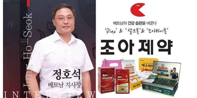 베트남의 어린이들이 콜라를 습관적으로 마시는 것을 보고 안타깝게 생각한 정지사장이, 베트남의 어린이들에게 대안을 주기 위해 출시했다는 Dino. Dino는 칼슘과 아연 등 두뇌 발달에 도움을 주는 성분이 함유된 ‘스마트디노’와 마그네슘과 비타민 등 키 성장에 도움을 주는 성분이 함유된’롱디노’는 지난해 국내 대표 우수 디자인 인증 제도인 ‘굿 디자인 어워드’에서 우수함을 인정받아 굿 디자인 선정의 영예를 얻은 제품이기도 하다. 이 밖에도 지난 2013년 베트남 수출을 시작으로 현재까지 7만 병 이상 판매되며 스테디셀러로 자리 잡은 ‘잘크톤’ 또한 베트남 기능성 식품협회 VAFF에서 주관하는 Golden Awards 시상식에서 금상을 수상하며 품질에 대한 신뢰성을 인정받고 있는 조아제약의 대표적인 상품이다.