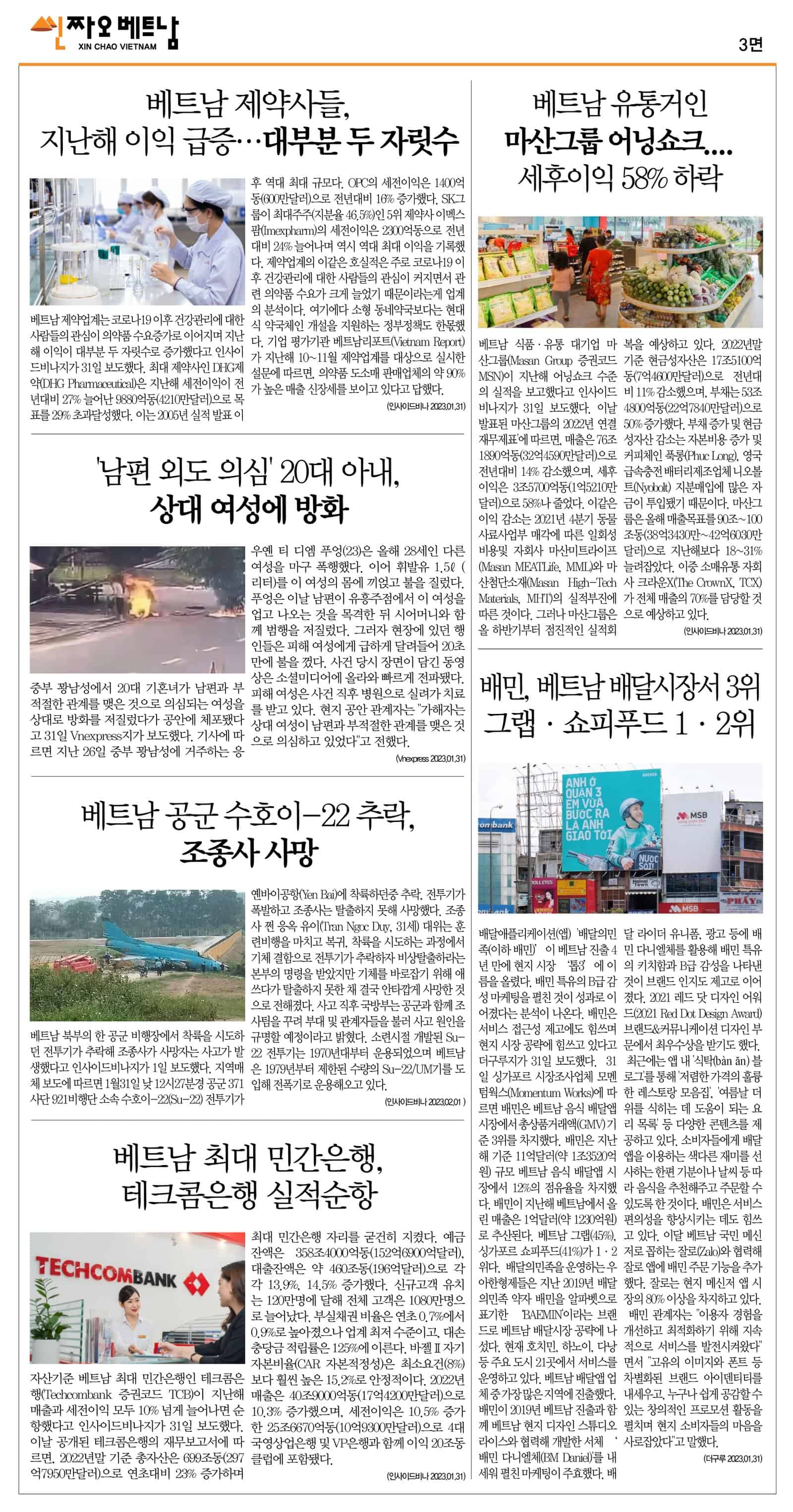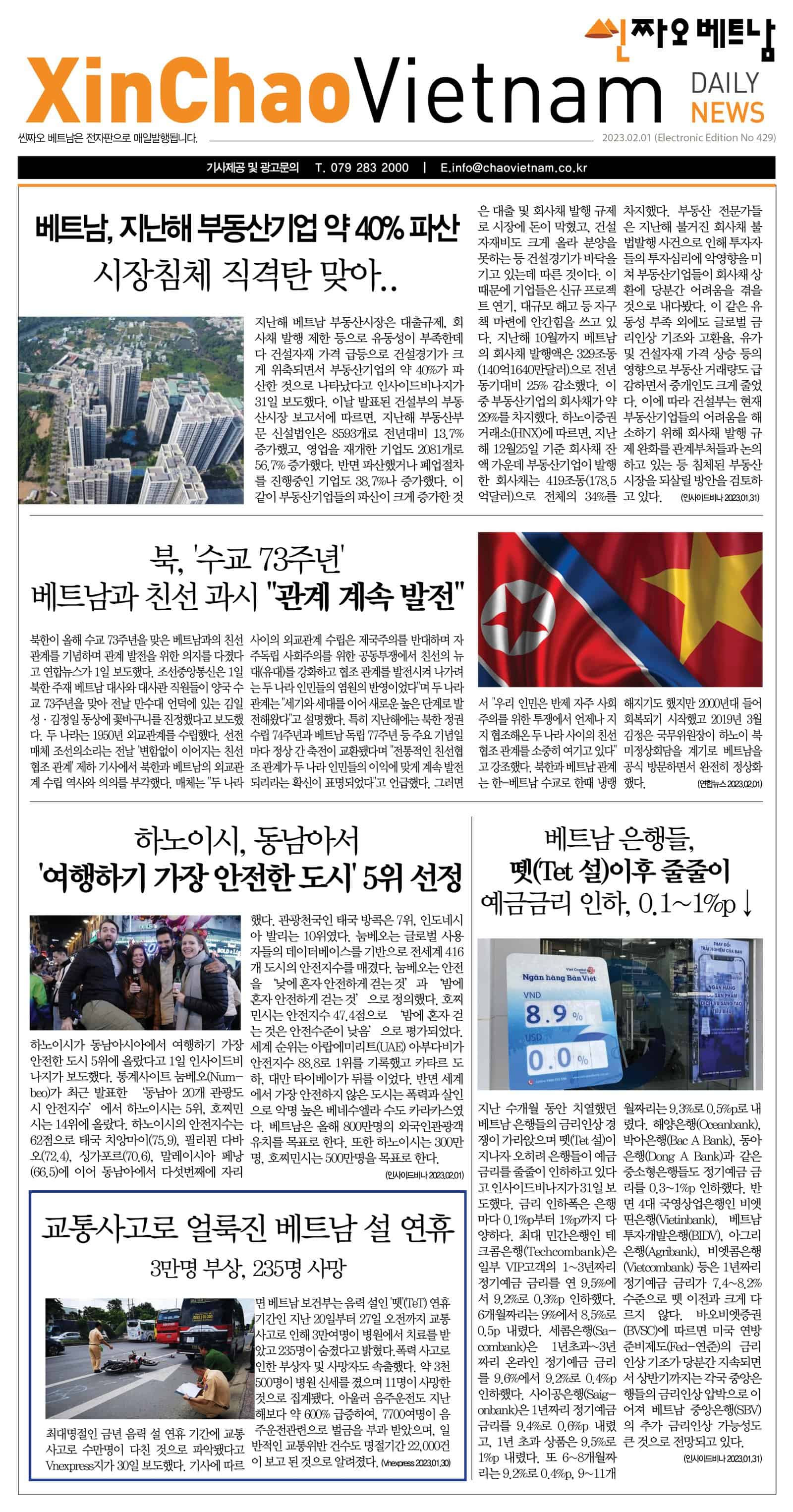 02월 01일 씬짜오베트남 데일리뉴스 chaovietnam 2023년 2월 1일 Daily News PDF, 뉴스 Leave a comment 518 Views 씬짜오베트남 02월 01일, 데일리뉴스 PDF 파일로 보기 씬짜오베트남 데일리뉴스를 PDF 로 크게 보실 수 있습니다. Share Facebook Twitter Stumbleupon LinkedIn Pinterest