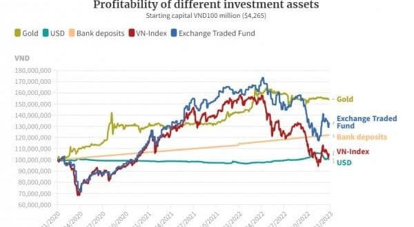 비엣콤은행증권(Vietcombank Securities)에 따르면, 지난 3년동안 가장 큰 수익을 기록한 것은 50% 상승한 금이었다. 금은 은행예금, 주식, 미국 달러화를 모두 제쳤다.