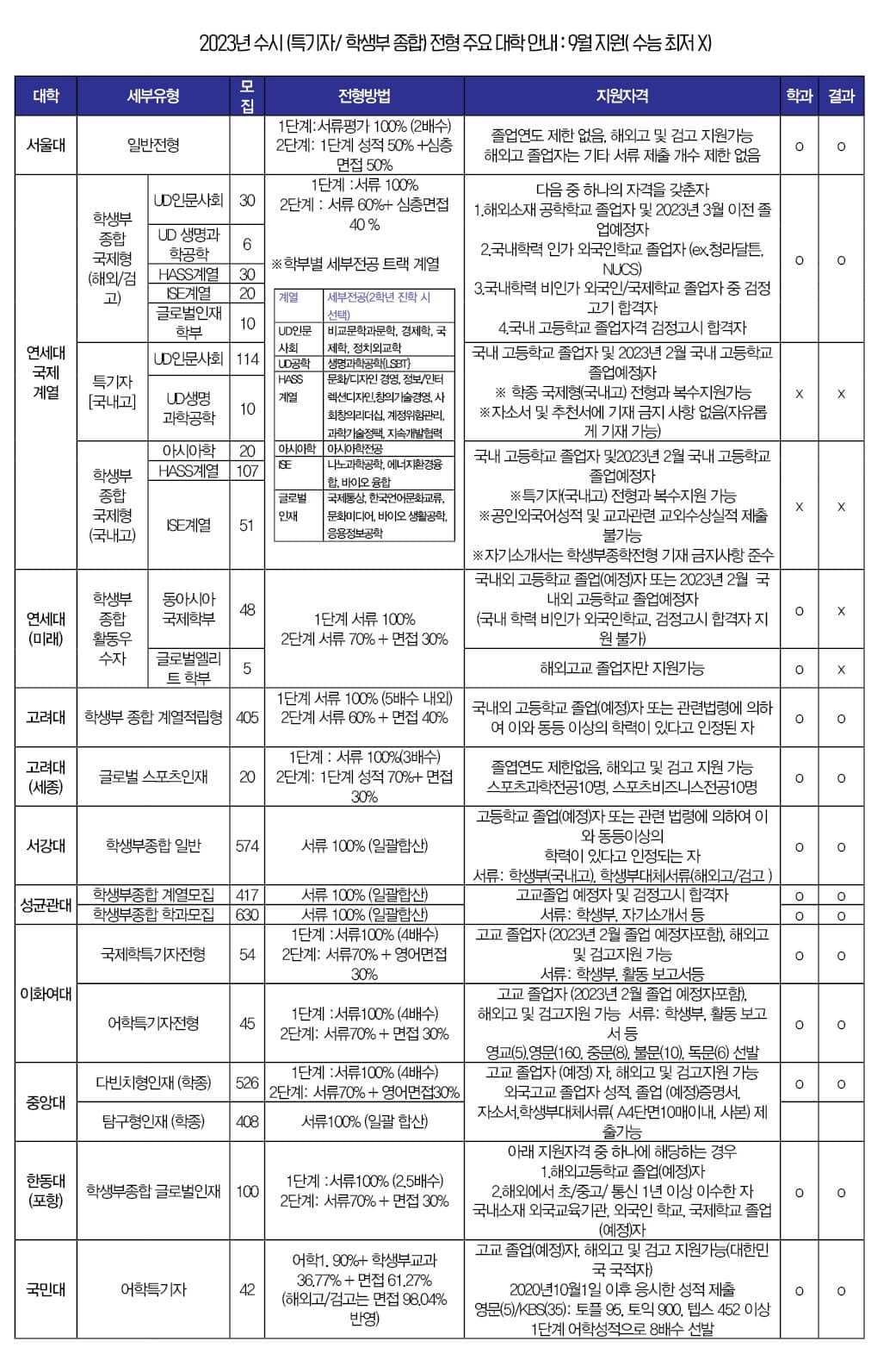 각종 실적과 함께 가장 유리한 학교 및 학과로 각각 선택해야 한다. (각 학교모집요강 꼼꼼히 공부 해 두기)