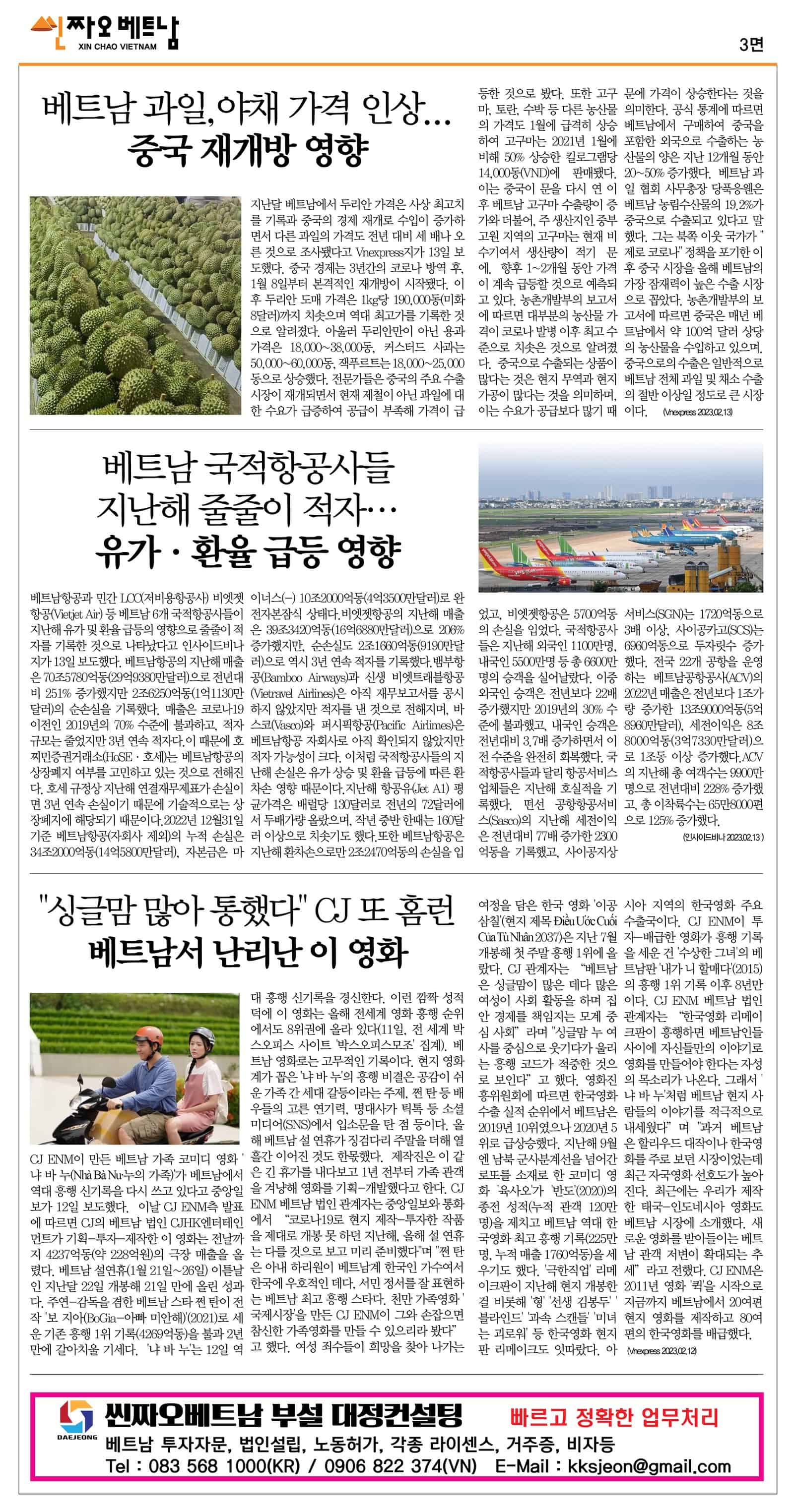 02월 13일 씬짜오베트남 데일리뉴스 chaovietnam 2023년 2월 13일 Daily News PDF, 뉴스 Leave a comment 36 Views 씬짜오베트남 데일리뉴스를 PDF 로 크게 보실 수 있습니다. 씬짜오베트남 02월 13일, 데일리뉴스 PDF 파일로 보기 Share Facebook Twitter Stumbleupon LinkedIn Pinterest