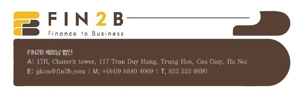 FIN2B 베트남 법인은 2018년 8월에 설립했으며, 2019년 9월부터 공급망 금융플랫폼 서비스를 현지 금융기관에 제공해 오고 있습니다. 현지법인의 본사는 하노이에 위치하고 있으며, 호찌민에도 상주인력을 배치하고 현재 신한은행, 우리은행, KB국민은행 및 미래에셋 등 베트남에 진출한 한국계 금융기관들에게 서비스를 제공하면서, 로컬 금융기관들에 대한 확대를 추진하고 있습니다.
