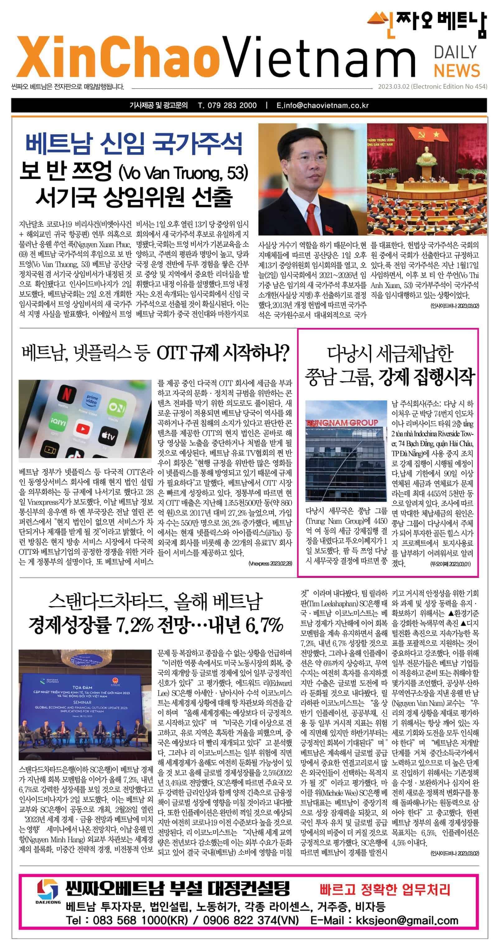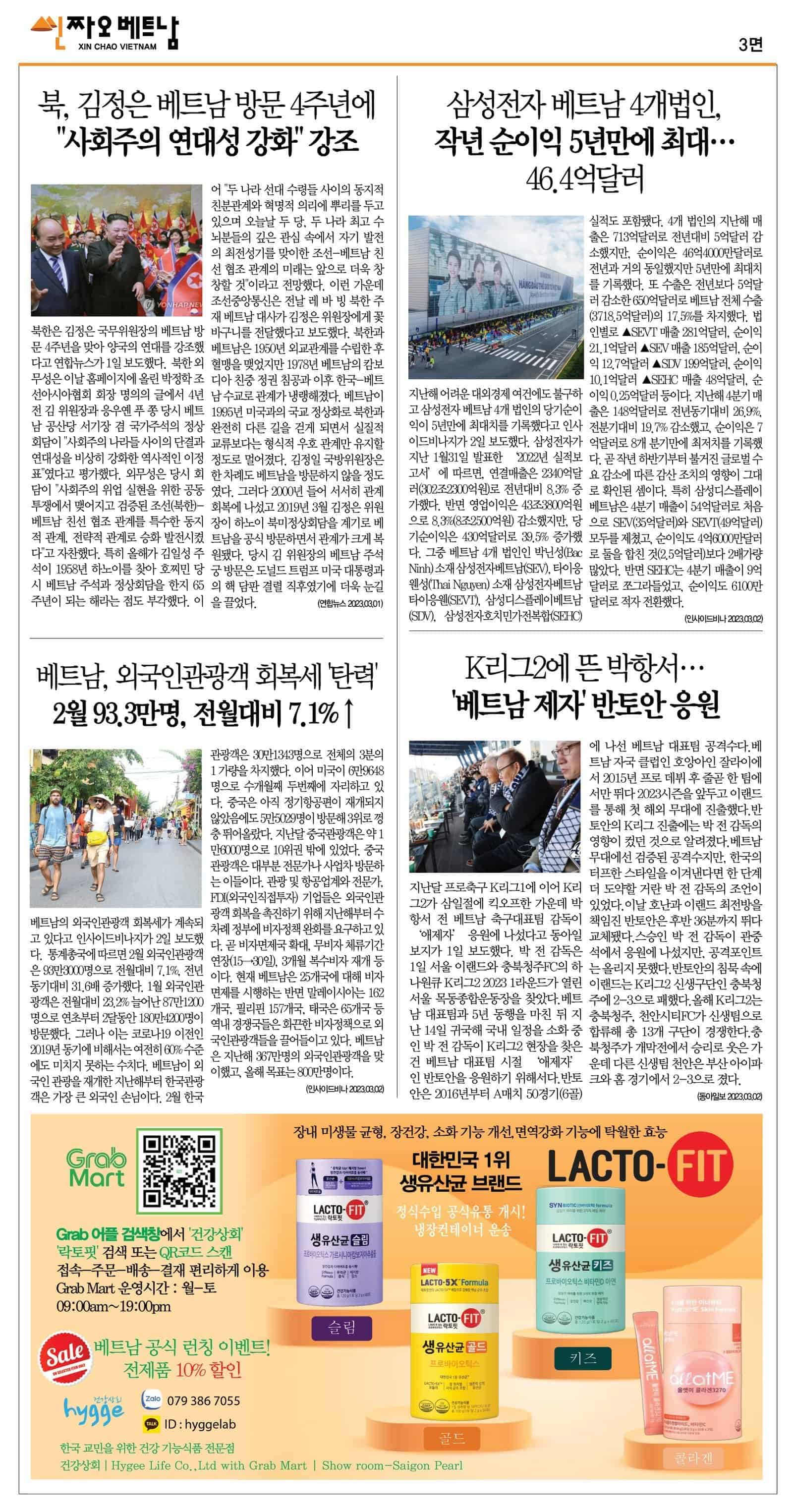 2023년 03월 02일 씬짜오베트남 데일리뉴스 chaovietnam 2023년 3월 2일 Daily News PDF, 뉴스 Leave a comment 19 Views 2023. 03. 02 씬짜오베트남 데일리뉴스 PDF 클릭하시면 더 크게 보실 수 있습니다. Share Facebook Twitter Stumbleupon LinkedIn Pinterest