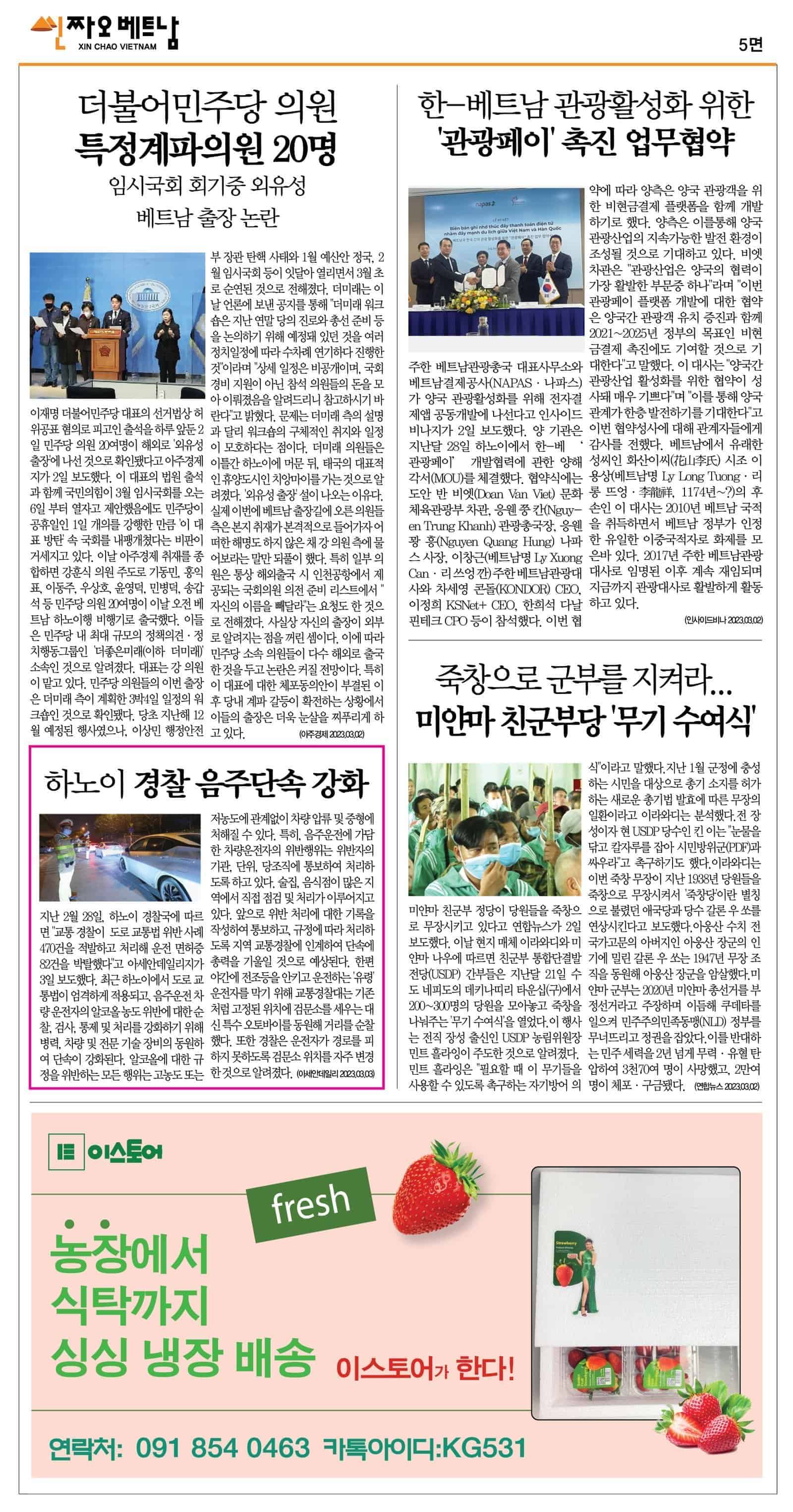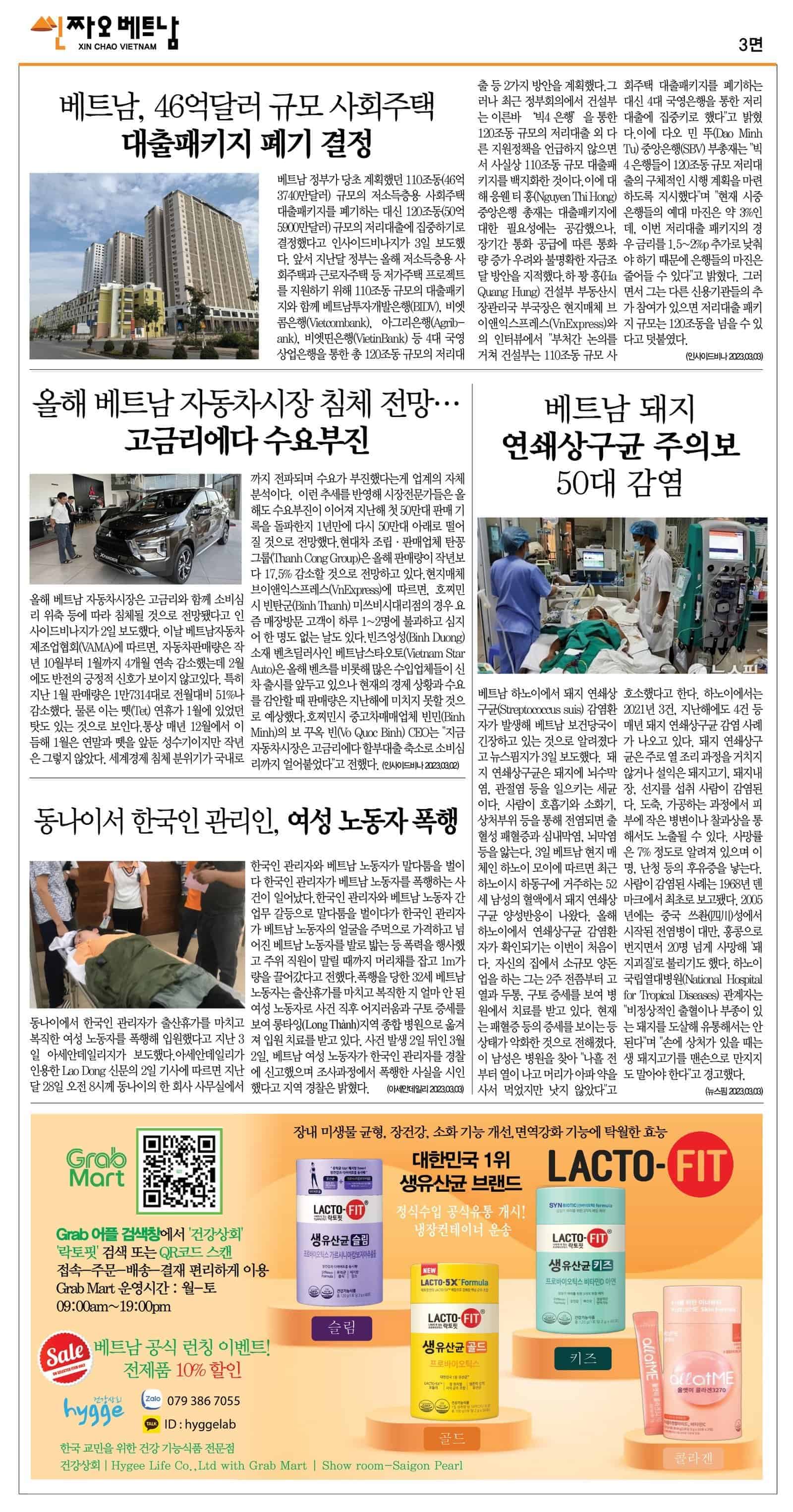 2023년 03월 03일 씬짜오베트남 데일리뉴스 chaovietnam 2023년 3월 3일 Daily News PDF, 뉴스 Leave a comment 20 Views 2023. 03. 03 씬짜오베트남 데일리뉴스 PDF 클릭하시면 더 크게 보실 수 있습니다. Share Facebook Twitter Stumbleupon LinkedIn Pinterest