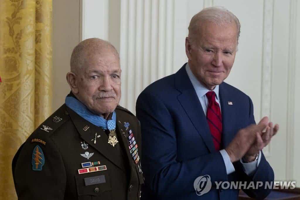 조 바이든 미국 대통령은 3일(현지시간) 백악관에서 퇴역한 패리스 데이비스 중령에게 명예 훈장을 수여했다.