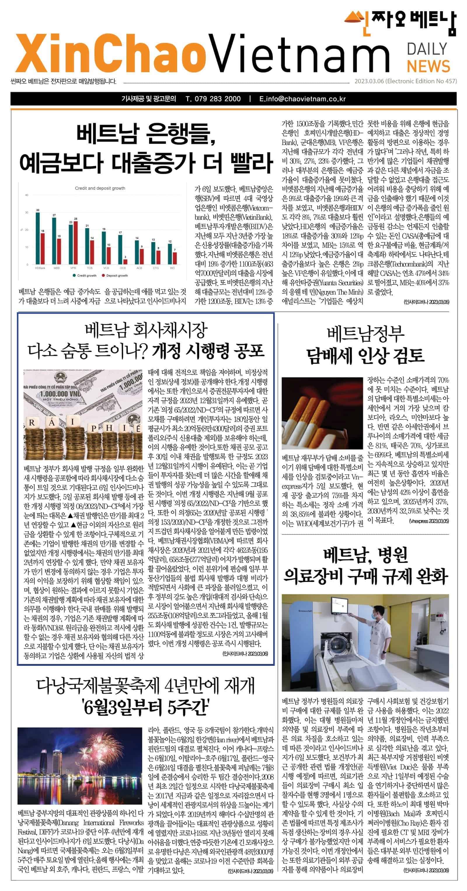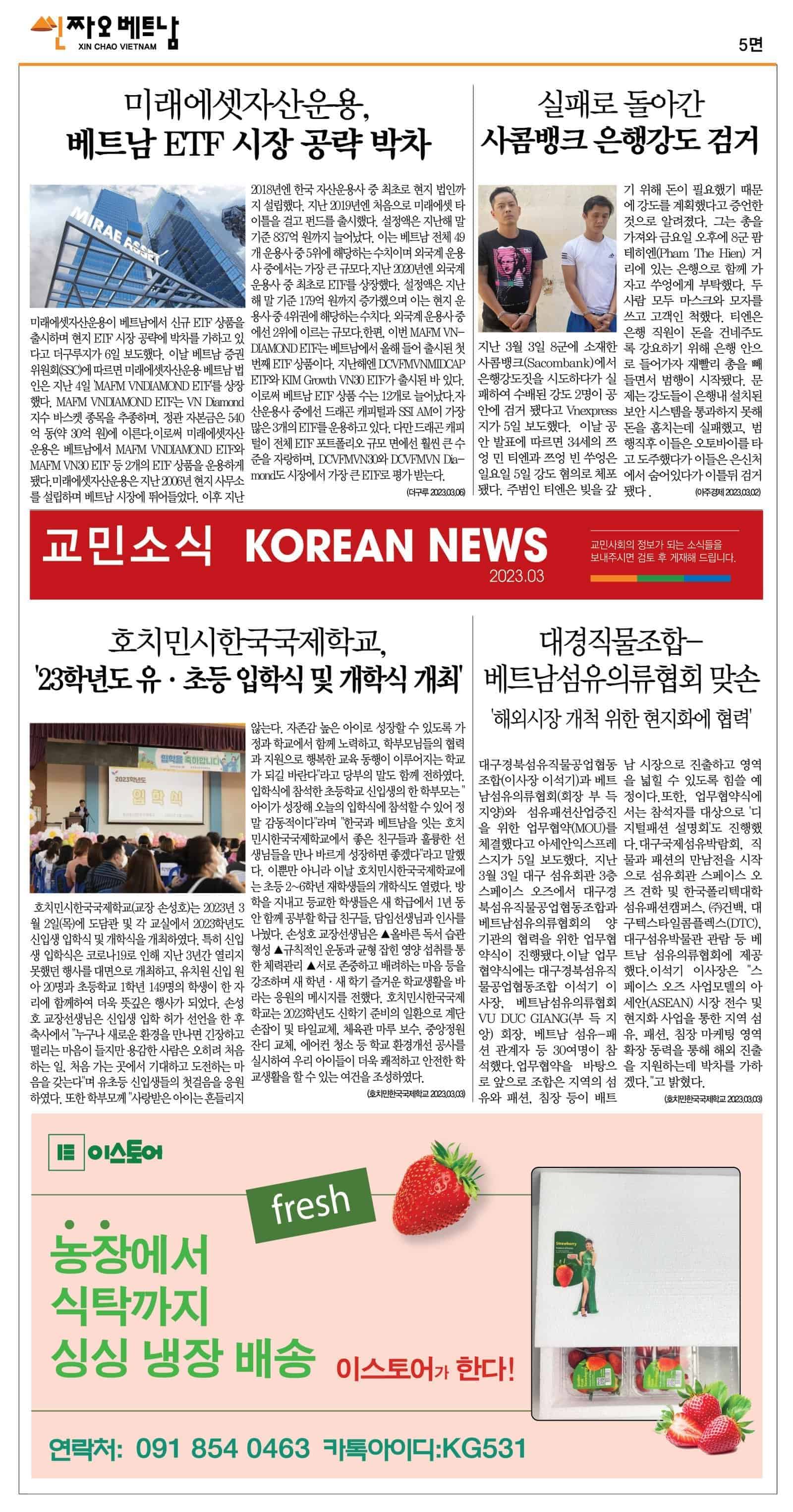 2023년 03월 06일 씬짜오베트남 데일리뉴스 chaovietnam 2023년 3월 6일 Daily News PDF, 뉴스 Leave a comment 26 Views 2023. 03. 06 씬짜오베트남 데일리뉴스 PDF 클릭하시면 더 크게 보실 수 있습니다. Share Facebook Twitter Stumbleupon LinkedIn Pinterest