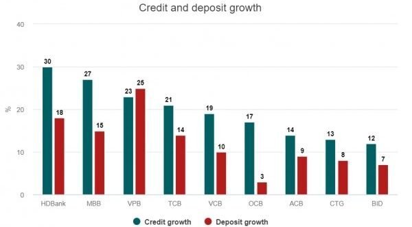 민간은행인 호찌민시개발은행(HDBank), 군대은행(MB), VP은행은 지난해 대출규모가 각각 전년대비 30%, 27%, 23% 증가했다.