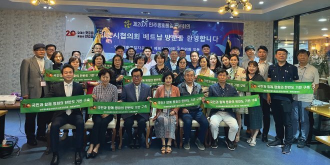 김포시협의회-베트남협의회 평화통일 간담회에서 박남종 협의회장은 환영사를 통하여 “전쟁의 역사적 지역 방문을 환영하며, 북한이탈주민역사탐방, 남북한통일요리교실, 평화순례단,서해-동해 바닷물 합수식, 평화누리길걷기, 평화통일기원 연날리기등 선도적인 다양한 활동으로 대한민국의 평화통일에 크게 기여하고 있는 김포시협의회의 이미연 김포시협의회장님외 30분의 자문위원분들의 베트남 방문을 환영하며 이번 베트남협의회와의 간담회를 통하여 앞으로 서로간의 평화통일 활동에 많은 도움이 되었으면 좋겠다”라고 하였다.