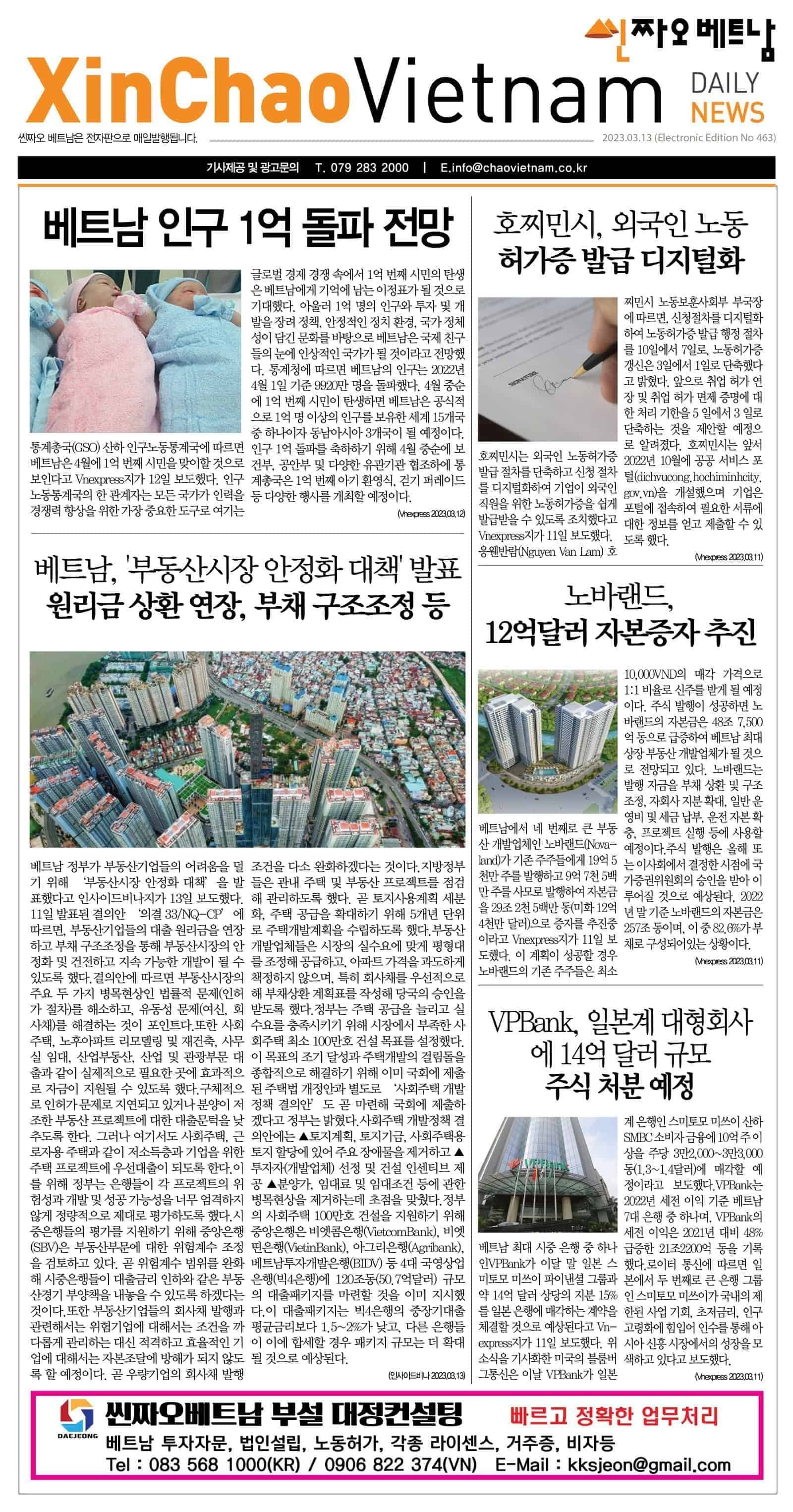 2023년 03월 13일 씬짜오베트남 데일리뉴스 PDF 더 크게 보실 수 있습니다