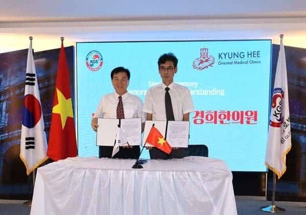 지난 3월 13일(월) KGS 한국글로벌학교(호찌민시 캠퍼스) 컨퍼런스룸에서 KGS와 호찌민시 소재 경희한의원 간 양해각서(MOU) 조인식 행사가 있었다. 이날 행사에는 KGS 정영오 이학교 교장과 경희한의원 곽남욱 원장을 비롯하여 학교 교직원들이 참석한 가운데 진행됐다. 이번 양해각서에 따라 경희한의원에서는 한국글로벌학교 학생과 학부모 그리고 교직원 건강 상담과 학생들의 봉사활동을 지원하고 원장님의 학생들의 성장과 건강 특강을 비롯하여 양 기관의 상호발전을 위해 노력한다는 내용을 담고 있다. 특히 경희한의원에서는 KGS학부모와 학생들이 병원을 방문하여 치료할 경우 치료비의 할인 혜택이 주어지게 된다.