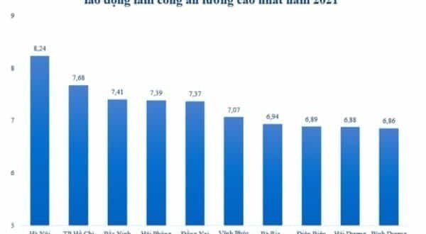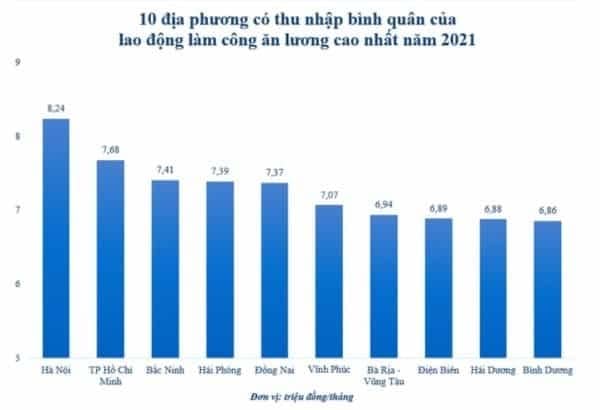 이외 박닌성(Bac Ninh) 741만동(314달러), 하이퐁시(Hai Phong) 739만동(313달러), 동나이성(Dong Nai) 737만동(312달러), 빈푹성(Vinh Phuc) 707만동(299달러), 바리아붕따우성(Ba Ria-Vung Tau) 694만동(294달러), 디엔비엔성(Dien Bien) 689만동(292달러), 하이즈엉성(Hai Duong) 688만동(291달러), 빈즈엉성(Binh Duong) 686만동(290달러) 순으로 상위 10대 지역에 올랐다.
