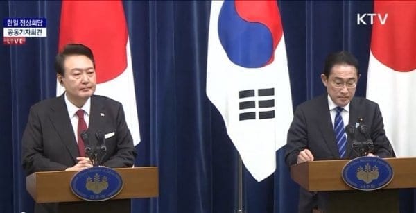 윤석열 대통령과 기시다 후미오 일본 총리는 16일 일본 도쿄 총리관저에서 정상회담 후 열린 기자회견에서 지소미아 정상화에 합의했다고 밝혔다.