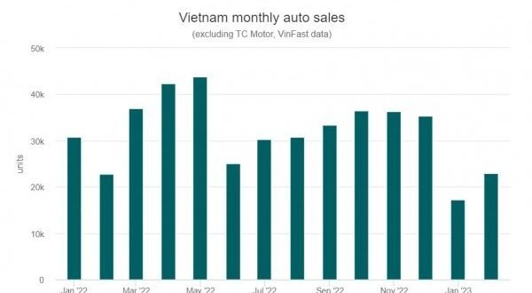 베트남자동차제조업협회(VAMA)와 기타 자동차 제조업체들 자료에 따르면, 1~2월 자동차 판매량은 6만8402대로 전년동기대비 27% 감소했다. 이중 VAMA 회원사들의 판매량은 5만3544대로 25% 감소했다.