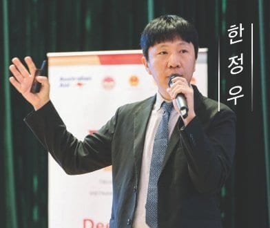 한정우 교수는 2003년부터 오랜 기간 베트남과 인연을 맺어온 인물이다. 고무농장을 하는 아버지를 따라서 베트남에 만 24세의 나이로 베트남에 들어온 청년 한정우는 우연한 계기로 당시 베트남에 막 개교한 호주계 RMIT베트남 대학의 학부생으로 시작하여, 여러 우여곡절을 거치고 10년간의 노력 끝에 2019년 같은 대학의 정교수 자리에 오른 자랑스런 우리의 베트남 2세 교민이다