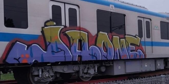 지난 일요일 롱빈 차량기지에 주차된 호찌민 지하철 1호선 열차가 낙서로 파손된 채 발견됐다고 Vnexpress지가 30일 보도했다.