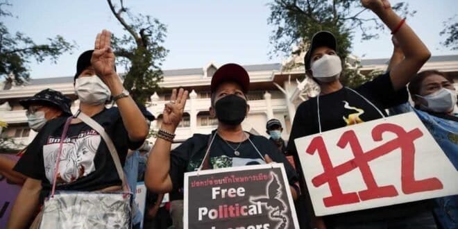 왕실모독죄 논란은 2020년 2월 전진당의 전신으로 젊은 층의 지지를 받던 야당 퓨처포워드당(FFP)이 헌법재판소에 의해 강제 해산된 후 시작된 대규모 반정부 시위를 계기로 불거졌다.