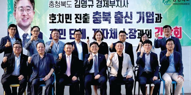 김명규 충청북도 경제부지사는 인사말을 통해 환대에 감사드리며 베트남 진출 기업을 더욱 실질적이고 효과적으로 지원하기 위한 방안과 기업들의 고언과 건의사항을 취합해 충북도시정에 반영할 수 있도록 검토하겠다고 밝혔다. 재 베트남 충청도 기업인 연합회 김민구 회장 및 기업인들은 베트남내 타 지자체의 전방위적 활동에 부러움도 있는데 도내 출신 기업인들의 목소리를 개진할 수 있는 자리를 마련해 주셔서 감사하다는 인사말과 베트남 수출 상품 개발 및 시장조사 등 충북도내 기업과 베트남내 기업간 교류 및 협력이 확대되길 기대하며 도의 전향적 지원 방안 강구를 요청했다. 한편 충북출신기업인 신흥건설 민경창 대표가 충청북도 무역, 투자 촉진과 국제협력 증진을 위한 ‘충청북도 명예대사’로 위촉되었다.