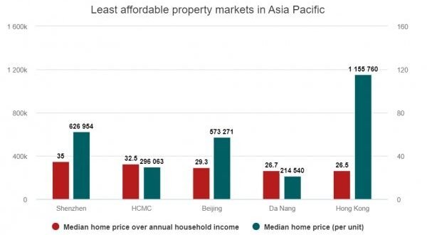 아태지역 주요 도시의 연간 가계소득 중간값 대비 주택 중간가격 배수는 서울 17.3배, 도쿄 17.8배, 베이징 29.3배, 상하이 24.1배, 홍콩 26.5배, 시드니 12배, 뭄바이 11.3배, 마닐라 24.8배, 자카르타 25.9배 등이었다.