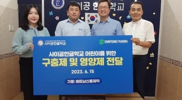 김홍식 베트남신풍제약 이사는 이날 전달식에서 “한-베 다문화가정의 요람인 사이공한글학교 어린이들이 건강하고 씩씩하게 성장하기를 기원하는 마음에서 구충제와 영양제를 전달한다”며 “앞으로도 지속적인 기증과 필요한 의약품도 지원할 계획”이라고 밝혔다.