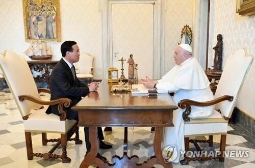 전날 로이터 통신 보도에 따르면 이날 바티칸은 프란치스코 교황이 바티칸을 방문한 보 반 트엉 베트남 국가주석을 비공개로 접견한 뒤 하노이에 상주 대표부를 둔다는 합의 내용을 발표했다.