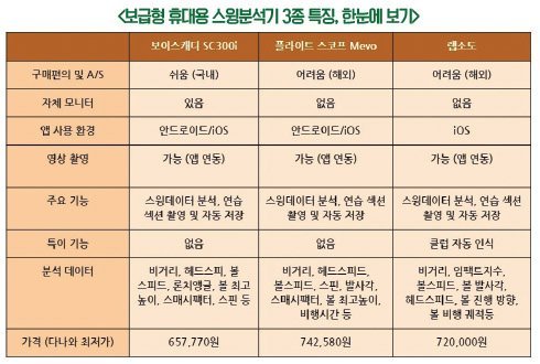 <보급형 휴대용 스윙분석기 3종 특징, 한눈에 보기>